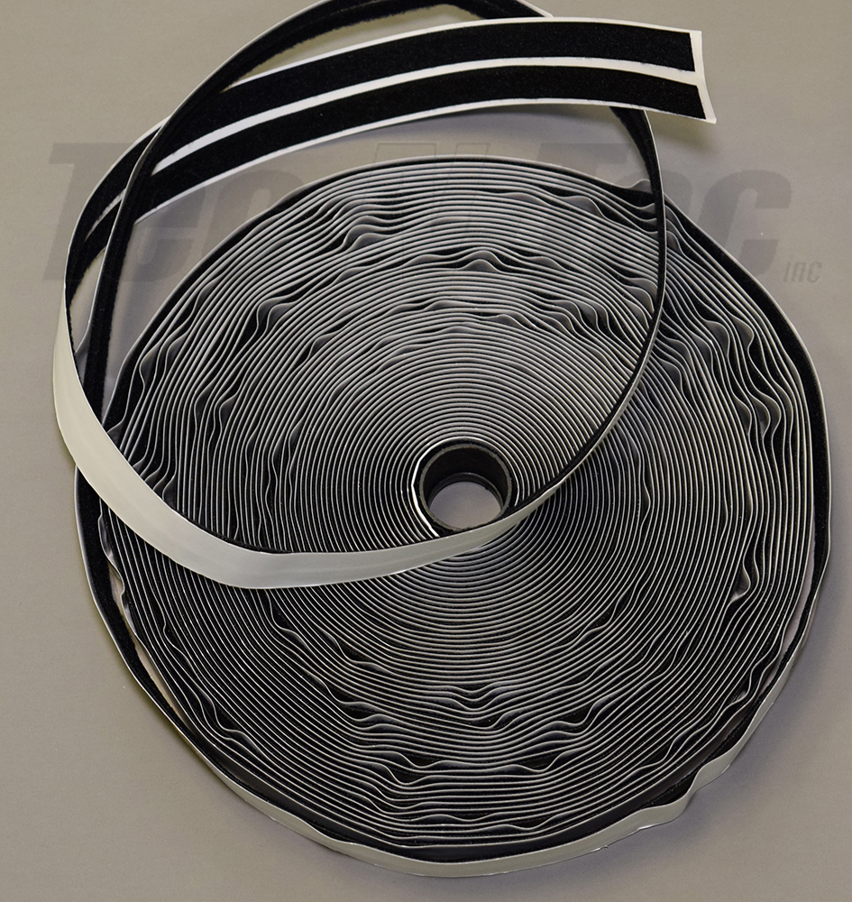 COTE BOUCLE 100mm X 25M, NOIR 100% NYLON, AVEC ADHESIF 4" |
