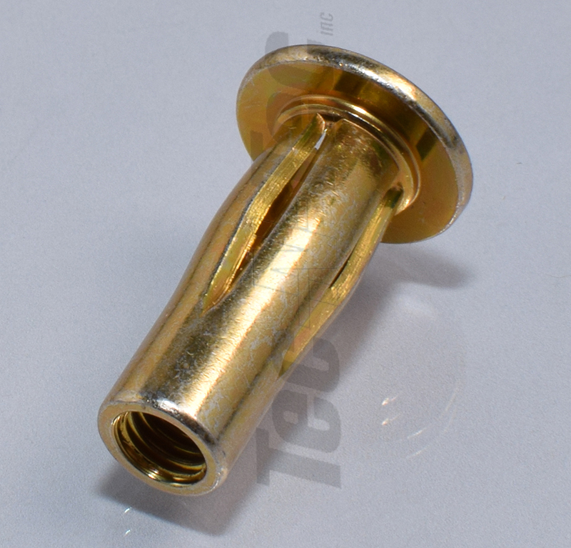 | ASTROTEC modèle IPR. Cet écrou inséré ( rivet nuts ) , avec ses fentes longitudinales, permet une installation en forme de pétales. L'avantage est une force de traction accrue lors d'une installation dans du plastique ou dans des feuilles de métal très mince. |